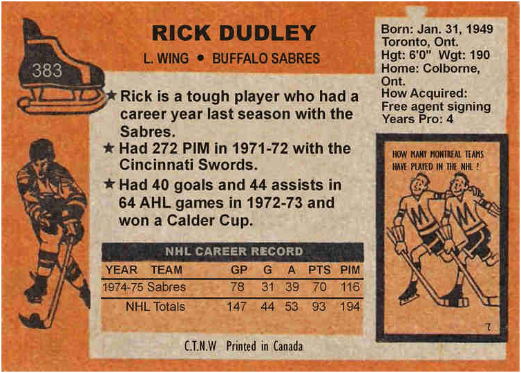 I know Mr. Schoenfeld would have been an outstanding defenseman for the Sabres but the mentoring of Mr. Horton assisted his development into one of our best defenseman ever to wear the Blue & Gold.
