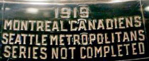 Officially 1919 is listed in NHL history of the Stanley Cup as “no winner”, admirably though when the Cup was redesigned in 1948 the NHL had the inscription added, “1919 Montreal Canadiens Seattle Metropolitans Series Not Completed”.