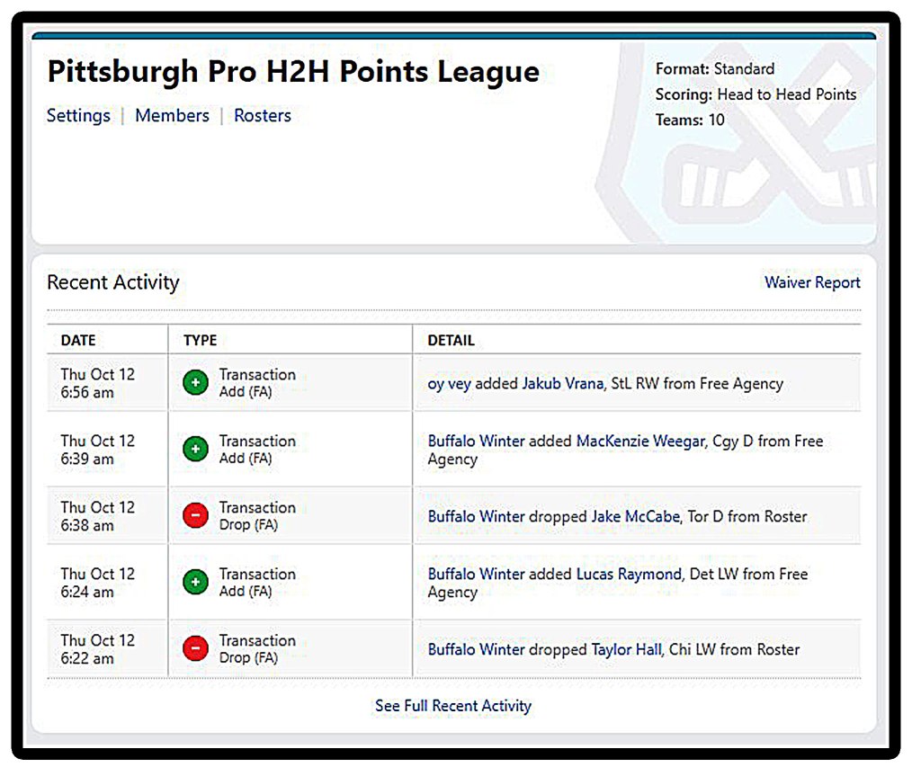 When team managers have to drop a player to make room for an older contributor coming off IR it could possibly disrupt their roster especially if the more recent player’s point production is higher.