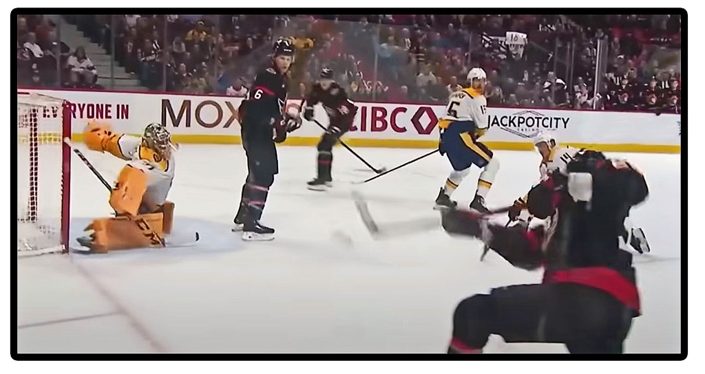 Ottawa 4 Nashville 3 OT In an exciting come from behind win at home, Ottawa initially gave their fans reason for anguish as Nashville scored three times in the first period, then receiving satisfactory elation as the Senators scored the next four goals.
