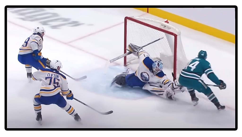 Buffalo 5 San Jose 2 Mr. Cozens breaks ankles as he nets the happy net goal, Mr. Mittelstadt has earned 20 points in his last 19 games, gloves were dropped but no punches thrown, as San Jose lost the early dreaded “two goal lead” and game to Buffalo in a late afternoon contest.
