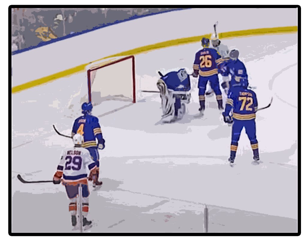 Mr. Greenway was such an effective screen for the Sabres third tally that HC Roy challenged with, “goaltender interference”, and after review showed there was absolutely no contact earning the Islanders a “delay of game” penalty.
