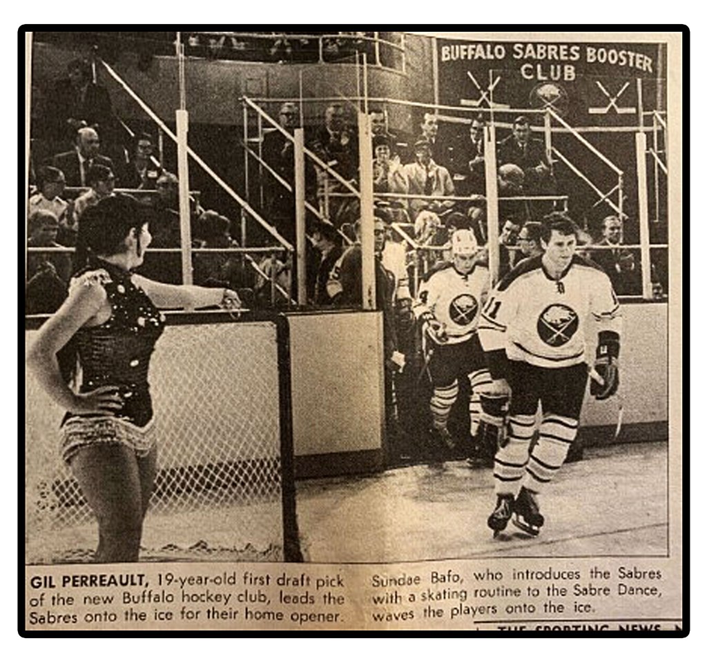 Buffalo employed a professional 22 years old figure skater to assist in introducing the players during home games in 1970, the young lady had become an amateur multi-medalist in the US and Canada who then coached at the Buffalo Skating and Curling Clubs and winning a National Synchronized skating championship.