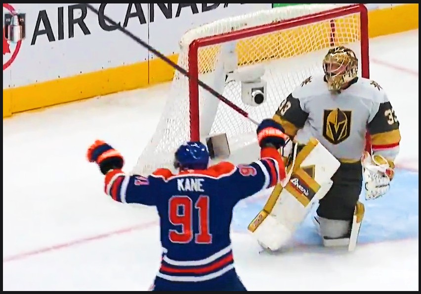 Oilers 3 – Knights 0 (SC QTR Finals 3-1 Edmonton) The Oilers dominated the Knights by outshooting them 15-5 and scoring twice amidst fighting, roughing, slashing, charging, and cross-checking penalties for the 2-0 lead all in the first period, bolstered by LW Kane’s goal in the second period and goaltender Skinner’s shutout, Nevada never stood a chance.
