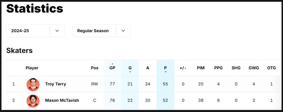 Anaheim DucksRW Troy Terry & C Mason McTavish