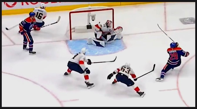 Video highlights the Florida player caused the goaltender interference with reckless skating, the Edmonton defenseman was not the reason for the interference, imho as well as last night’s announcers who said as much before the official’s declared a “good goal”.