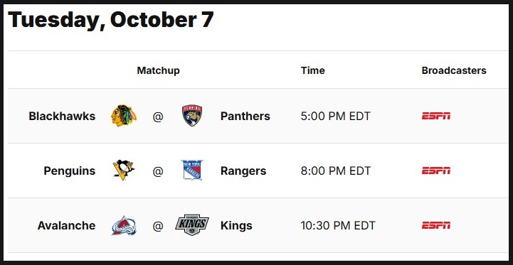 The NHL will begin their regular season after today’s 11 final preseason contests on October 7th with three games that includes the defending two-time Stanley Cup champion Florida Panthers.