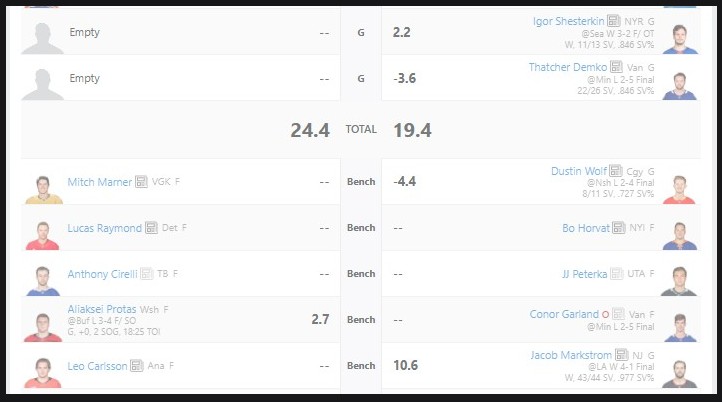 As you can see the team manager had two goaltenders producing negative points, as we know, goalies are a high-risk, high-reward type of player, for myself I avoid them all together.