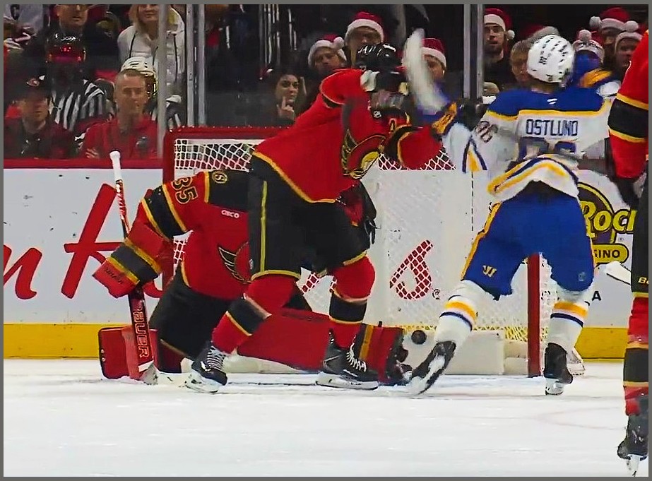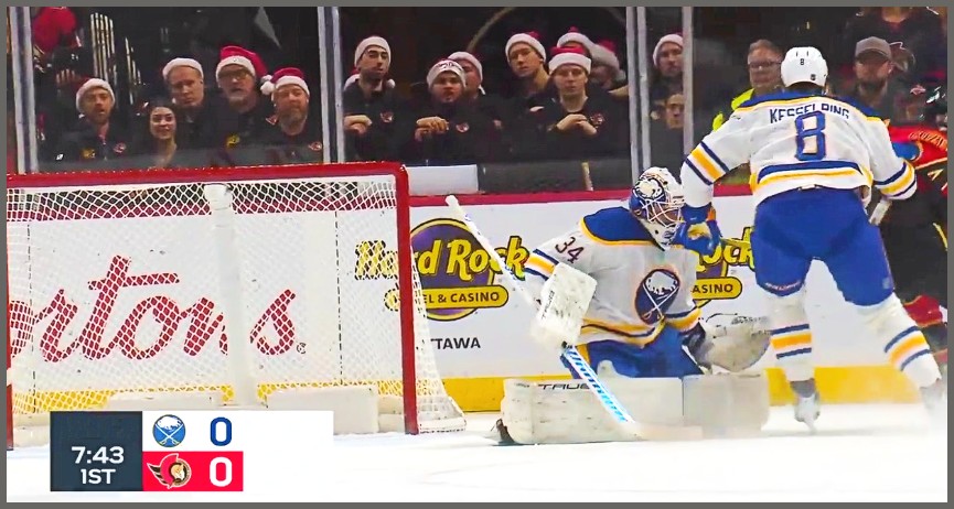 The game’s initial two penalties during the first period earned by Sabres (D) Kesselring and Senators (LW) Tkachuk, Buffalo for high-sticking and Ottawa for roughing which resulted in the Ottawa player bleeding, but alas the officials could not determine with certainty if the blood was caused by the high stick or the scuffle that ensued.