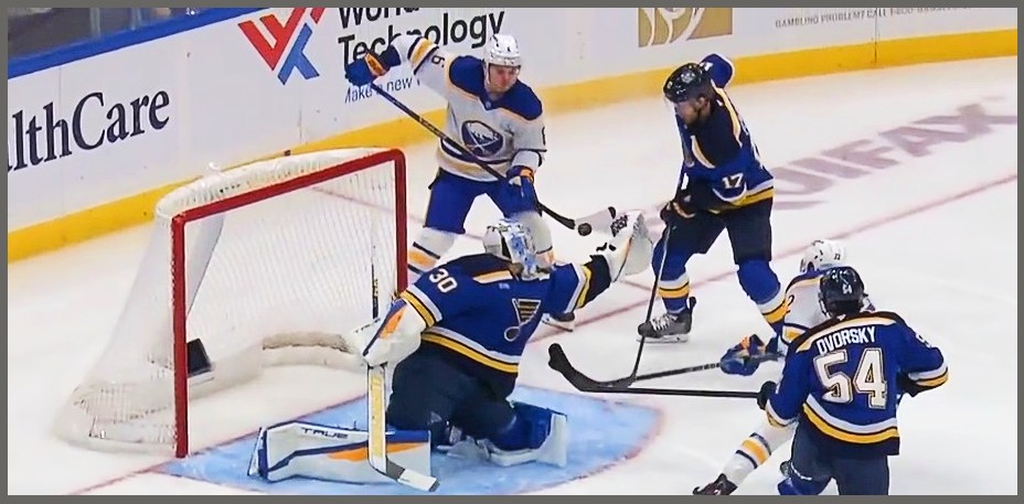 Buffalo began the game on a high note, controlling play and scoring first, but the Blues bounced back with two goals in five minutes before the first period was half over, then St Louis went on the power play against one of the premier penalty killers in the NHL and could not score.
