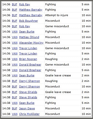 This unfortunately is what happens when the officials lose control of a game, not all the blame lays at the skates of the Referee (only one) and two Linesmen, players contribute as well when players stick up for one another…over, and over again.