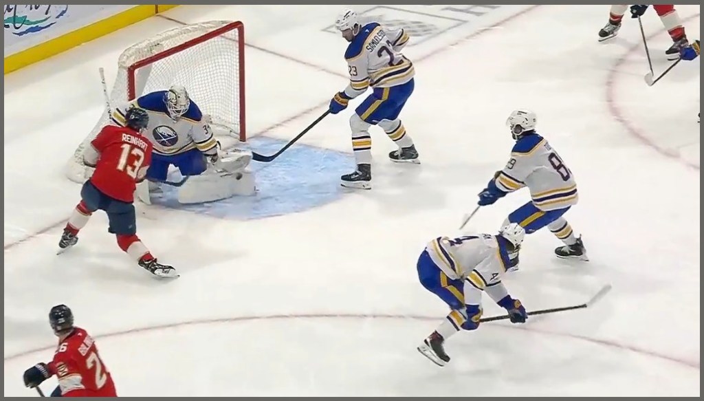 Before either team worked up a sweat, Florida scored 37 seconds into the first period with a nice snapper that deflected off of Sabres (G) Lyon into the net, and to make matters worse, the Panthers scored again five and a half minutes later for the 2-0 score just six minutes into the game.