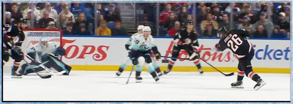 Buffalo won most of the faceoffs, killed four power plays, scored on the power play, outshot the Kraken and took the only SOG during OT, Sabres (G) Luukkonen was spectacular when he needed to be (.941%), and Captain (D) Dahlin scored his 100th goal, (C) Krebs tied the game and his personal high in regular season goals, as (C) Thompson and (RW) Quinn were the only goal scorers in the shootout in one of the more exciting home games this season.