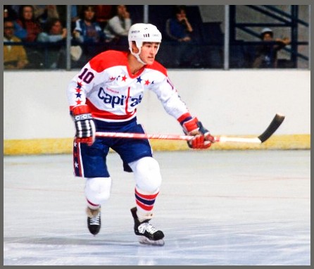 After 22 games in the 1986-87 season the Capitals (7 seasons) traded their star American to the New York Rangers (1 season) who after 28 games traded the center to the Los Angeles Kings (3 seasons) who then traded him to Boston (4 seasons) where he was a 25-goal man twice before resigning with Washington for one season before they let him go and he signed with the New Jersey Devils (6 seasons) where (C) Carpenter won his Stanley Cup.