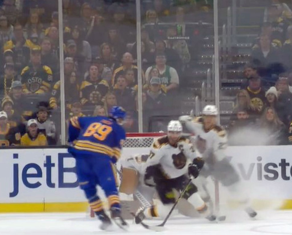 In the third period, Boston literally shoots half of their game’s SOG (19) and went up 3-2 with 7:35 remaining 52 seconds later Buffalo is whistled for a four-minute penalty then four seconds later another two-minute penalty to be down 5 on 3 for two minutes.